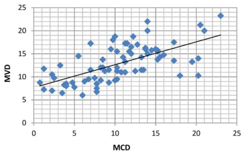 Overall Correlation between Mean Mast Cell Density (MCD) and Mean Microvessel Density (MVD).