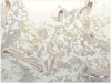 | Figure 2 Microscopic image of immunohistochemical staining for osteocalcin (brown color) in cancellous bone sample. |